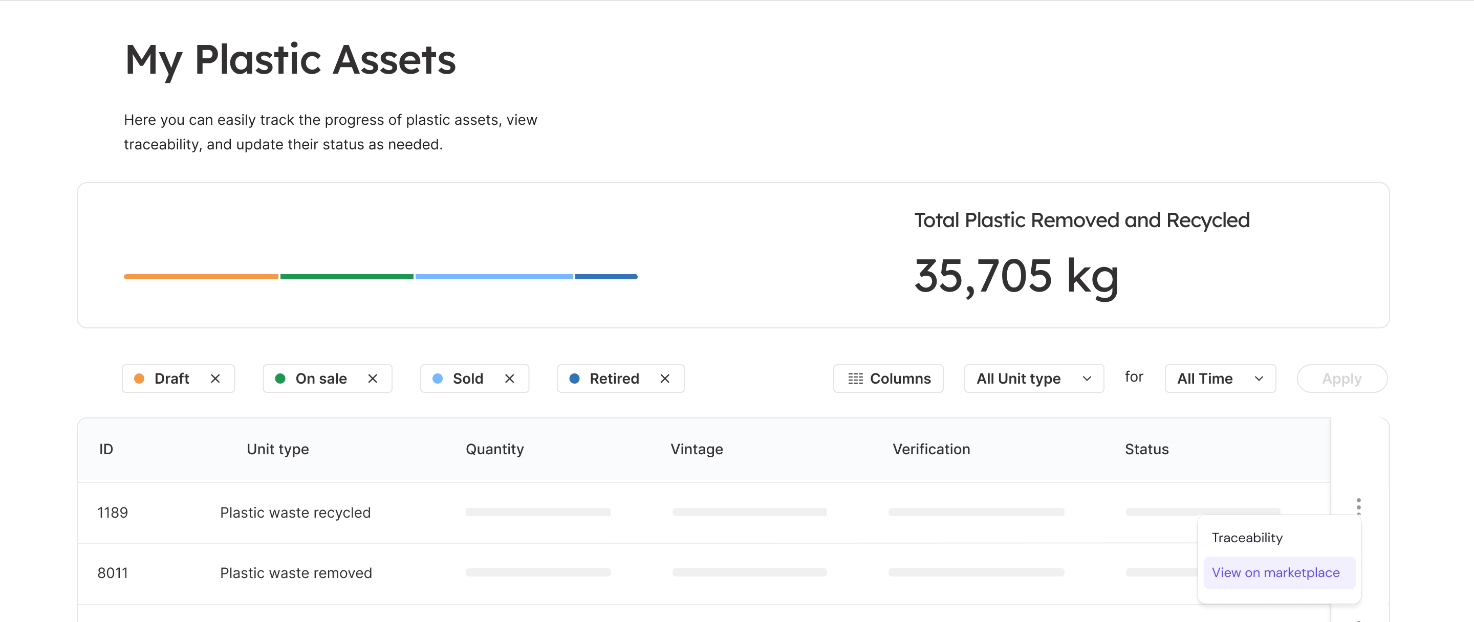 Whether you organize beach cleanups, your initiative installs trash bins for plastic bottle collection, or your project turns plastic waste into new products, R3chain is here to support you in achieving your goals and creating a better future for our planet. Our platform provides you with the tools you need to manage plastic waste from collection to recycling, and to generate plastic credits that you can sell on our marketplace.